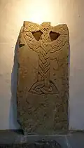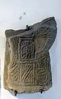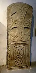 A stone slab showing a six-spoked 'cart-wheel' on the front and a linear 'ring cross' on the reverse. Although most linear crosses are dated rather earlier than the sculptured crosses, these are most likely to have been made at the same time.[1]