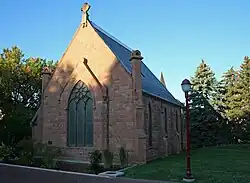 She and her husband were involved in the design and construction of two Gothic churches, Evans Memorial Chapel, built in the memory of Josephine Evans Elbert and dedicated on October 10, 1878, and the Grace Methodist Church, which was dedicated on January 27, 1889.[2]: 28 She served on the Colorado Seminary (now University of Denver) board of trustees from 1880 to 1900 and was a patron of the school's Fine Arts department. She was the president of the Board of Control when the department was reorganized as the Denver School of Fine Arts in 1892. In 1884, she chaired a committee to establish a woman's chair in the University of Denver. The committee of 20 women raised $30,000. From 1888 to 1891, Mary Lowe Dickinson was the Woman's Chair of Belles-lettres. She was a friend of Evans.[2]: 28
