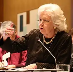 Margaret Hilary Marshall (born September 1, 1944) is an American jurist who served as the 24th chief justice of the Massachusetts Supreme Judicial Court, the first woman to hold the position. She was chief justice from 1999 to 2010. On July 21, 2010, she announced her retirement.[1] She was Senior Fellow of the Yale Corporation until she retired from the board in 2016,[2] Senior Counsel at Choate Hall & Stewart, and a member of the Council of the American Law Institute. Marshall was elected in 2017 to the American Philosophical Society.[3]