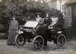 In 1909, Hewitt was arrested in Preston and she was invited to Eagle House aka "Suffragette's Rest" near Bath.[3] Key activists from the suffragette movement were invited to stay at the Blathwayt's house and to plant a tree to celebrate their work, a prison sentence or to mark having been on hunger strike.[4] The trees were known as "Annie's Arboretum" after Annie Kenney.[5][6] Hewitt planted an Ilex aquifolium albo marginata Holly on 3 October 1909 in Annie's Arboretum.[1] She had her photo taken by Linley Blathwayt, a lead plaque was mounted and she was photographed with Annie, Mary Blathwayt and Bodo (Linley Blathwayt's Oldsmobile car).