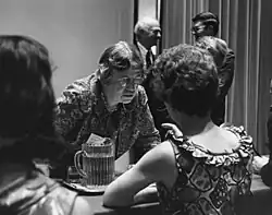 Following Ruth Benedict's example, Mead focused her research on problems of child rearing, personality, and culture.[29] She served as president of the Society for Applied Anthropology in 1950[30] and of the American Anthropological Association in 1960. In the mid-1960s, Mead joined forces with the communications theorist Rudolf Modley in jointly establishing an organization called Glyphs Inc., whose goal was to create a universal graphic symbol language to be understood by any members of culture, no matter how "primitive."[31] In the 1960s, Mead served as the Vice President of the New York Academy of Sciences.[32] She held various positions in the American Association for the Advancement of Science, notably president in 1975 and chair of the executive committee of the board of directors in 1976.[33] She was a recognizable figure in academia and usually wore a distinctive cape and carried a walking stick.[1]