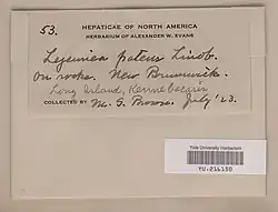 - ^ "Yale University Herbarium, Peabody Museum of Natural History". Consortium of Bryophyte Herbaria. Archived from the original on November 4, 2021. Retrieved April 25, 2020.