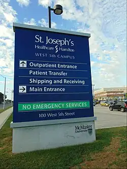 2. ^ "Health Services". St Joseph's Healthcare Hamilton. Retrieved 9 September 2016.