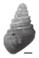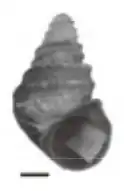 | Abapertural view of the shell of Margarya bicostata. Scale bar is 1 cm. | |