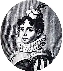 Margherita Sarrocchi (c. 1560, Naples – 29 October 1617, Rome) was an Italian poet and a supporter of the theories of Galileo. She was also a mathematics student with a vast variety of interests in other sciences.[1] Sarrocchi had numerous other scientific interests like geometry, astronomy, and natural philosophy. However, her writings in these fields have been lost or destroyed. Sarrochi's works have been forgotten and left behind like many other female scientists.[1] Margherita Sarrocchi was first friend and potential lover, then rival and enemy of Giambattista Marino, and wrote an epic poem in twenty-three cantos, the Scanderbeide, celebrating the heroic exploits of Scanderbeg against the Ottoman Turks.