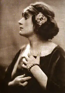 She was tall,[10] and considered a beauty as a young actress,[3] a "Burne-Jones girl in an English garden-party hat... quite the pinkest and whitest, fresh daisiest thing we have had for a long while," mused one Los Angeles writer.[11] During World War I she worked raising funds for the Red Cross.[12]