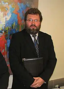 Margus Kolga (born 1 May 1966)[1] is an Estonian diplomat. He graduated from the University of Tartu's Faculty of History in 1992. After graduation, he joined the Ministry of Defence of Estonia, where until 1994 he served as a desk officer in the Supply and Logistics Department. In 1994 he was promoted to the post of the Head of the Bureau of Defence Policy and from 1995 he worked as Head of the Department of the Security Policy. He served as the deputy (and acting) chancellor on defense policy for Estonia from 1996 to 2003. During this period Margus Kolga was actively involved in Estonia's NATO integration process and headed the Governmental Interagency Task Force for NATO membership. From 2003 to 2007 he worked as a senior research fellow in the Baltic Defence College and was responsible for the organising and support of the newly established Higher Command Studies Course (HCSC). In 2007 Margus Kolga joined the Ministry of Foreign Affairs of Estonia as the Director General of the 1st Political Department (Security Policy and International Organisations) until 2010. From 2010-2015 he served as the Permanent Representative of Estonia to the United Nations.[2] In 2015 he was seconded to the State Chancellery to coordinate the drafting of the new Security Policy Strategy. In 2016 he returned to the Ministry of Foreign Affairs and took his position as head of the UN Security Council Campaign Task Force.