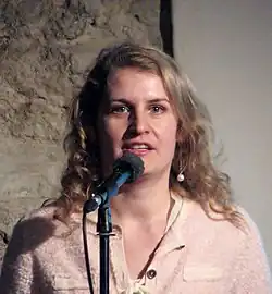 Mari Uusküla at the presentation of Vadja keele sõnaraamatut (Votic Dictionary) at St. Catherine's Monastery, 2014 | |