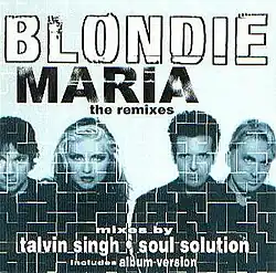 "Maria" is a song by the American rock band Blondie. It was written by the band's keyboardist Jimmy Destri and was produced by Craig Leon. Taken from their seventh album, No Exit (1999), it was Blondie's first new release since 1982. "Maria" was released to US radio stations on January 5, 1999, then was issued as a retail single in Europe six days later. The song reached number one in the United Kingdom, giving Blondie their sixth UK chart-topper. The song also topped the charts of Greece and Spain, becoming a top-20 hit across Europe and in New Zealand. Its accompanying music video was directed by Roman Coppola.