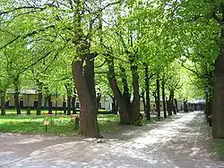 Under the church are older sepulchral chambers. Alongside the southern part of the churchyard are burial chapels of which one today serves the parish of the Finnish Orthodox Church in Sweden.[1]
