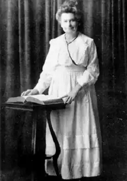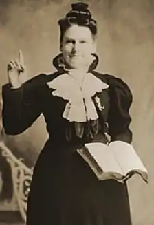 After this experience, she began to preach. Reporting hundreds of conversions, her campaigns attracted reporters from across the country. Impressed by her preaching ability, several denominations vied for her attention. The Quakers, Methodism and "Bible Christians" made her lucrative offers, but her dream was to evangelize in the western states.[6] Many denominations did not allow female pastors, and she shied away from those groups, feeling that they contradicted her calling from God. She was briefly affiliated with the Brethren in Christ but eventually joined the Church of God of the General Eldership founded by John Winebrenner. She was dismissed from the Church of God in 1904.[1]