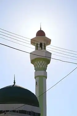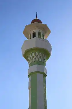 On the façade a plaque refers to the building simply as 'Moskea' that is a word in use in Maltese when referring to a Mosque. The shell structure of the Al-Batool Mosque is made of limestone while the arabic architecture is made of both limestone and wood. The mosque has one dome painted in green[97] and one minaret that is a landmark in its own right by being visible from wide parts of the surroundings, and for this reason it is often used to explain directions.[98][99]