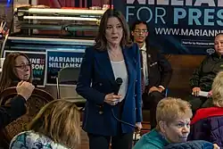 Williamson first ran for office in the 2014 U.S. House elections, seeking to represent California's 33rd congressional district as an independent. She placed third in the nonpartisan blanket primary and did not advance to the general election.[12] She later ran a campaign for the 2020 Democratic Party presidential nomination.[13] She formally ended her campaign on January 10, 2020,[14] endorsing Bernie Sanders and then Joe Biden as the nominee.[15][16]