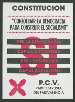 - ^ in the late 1970s the 1920-born Zufía was among the oldest party militants; among other recognized names, Carles Feliú Travy was born in 1923, José María Zavala Castella in 1924, Josep Badía Tomás in 1925, Juan-Angel Pérez-Nieves Abascal in 1930, Pedro José Zabala Sevilla in 1934, Josep Carles Clemente Balaguer in 1935 and Evaristo Olcina Jiménez in 1938
