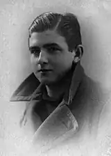 Both Zufía's parents came from Carlist families and were Carlists themselves.[25] His father was member of Traditionalist trade unions and under the pen-name “Rozala Afizu” he contributed to Traditionalist dailies, El Pensamiento Navarro and La Constancia.[26] Already in his early teens the young Mariano engaged in the movement; he joined Muthiko Alaiak, the folk group animated by the iconic Pamplonese Carlist Ignacio Baleztena, he played football in the amateur team formed by boys from the local Carlist círculo,[27] entered Agrupación Escolar Tradicionalista and took part in school strikes of 1935–1936, staged as protests against what was perceived as anti-religious educational policy of the Republic.[28] A later hagiographic biography underlines Zufía's Catholic conviction as the key motive behind his political choice, and suggests that it outweighed some socialist leaning, took after his maternal uncle.[29] In the mid-1930s Zufía enlisted to requeté and as an adolescent boy trained with wooden rifle in the hills surrounding Pamplona.[30] He actually served in requeté combat units during two short strings, in the summer of 1936 and in the spring of 1937.