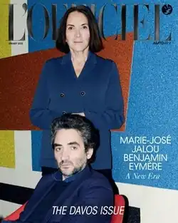 In 2022, the Jalou family sold Éditions Jalou and its assets to AMTD. Susskind-Jalou exited her position as editorial director of L'Officiel and president of Éditions Jalou.[13] Her children continued their roles at the magazine with Vanessa Bellugeon as editor-in-chief (fashion), Benjamin Eymère as CEO of L'Officiel, inc., and Jennifer Eymère as the casting director.[13]