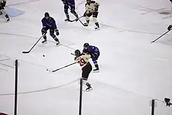Poulin was named team captain for the 2015 IIHF Women's World Championship. She registered six points for Team Canada in the course of the tournament, including a goal in the final game, a 7–5 loss to Team USA.[57] Poulin continued to serve as captain at the women's tournament at the 2018 Winter Olympics in Pyeongchang, where Canada won silver.[58]