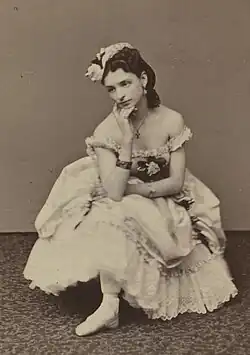 She made her New York City debut came at Niblo's Garden on Monday, September 10, 1866.[2] She then was the prima ballerina in The Black Crook at the same theatre, which premièred two days later. She appeared in Sylvia by Léo Delibes at the Metropolitan Alcazar concert hall on July 15, 1882.[3] In August 1901, Bonfanti performed with Rita Sangalli at the Metropolitan Opera House, during the inaugural season of ballet at the New York City venue.[4] Her talent for expressionist dancing and her private life were covered widely from the mid-1860s until the early 20th century.