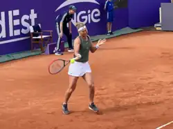She reached the fourth round of the WTA 1000 Italian Open for the first time, defeating sixth seed Coco Gauff for her third top-5 win.[29] In the same tournament, on her debut in doubles, she reached semifinals, alongside Bethanie Mattek-Sands, using protected ranking. They lost the match to fourth seeds and eventual champions, Elise Mertens and Storm Hunter.[30]