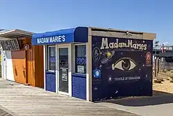 Madam Marie began telling fortunes at her small, twelve foot square booth called the Temple of Knowledge in 1932.[1] She, and her small stand, would remain a popular Asbury Park fixture on the city's boardwalk for much of the next seven decades. According to Castello, when she opened her business in the 1930s the Asbury Park boardwalk was a much more formal place than it became in later decades, "You couldn't walk on the boardwalk without shoes. You couldn't go on the boardwalk in a bathing suit. And there was never any drinking."[1] At the time, many of her customers wore dresses, evening gowns and tuxedos to walk the boardwalk.[1]