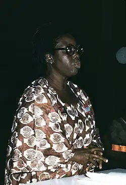 She returned permanently to Togo, which gained independence from France in 1960, and supported the leadership of the country's Direct Tax Department from 1960 to 1962. She then worked as chief administrative secretary and then director of social affairs starting in 1963.[1] At the same time, she represented Togo at various symposiums and congresses, and in 1961 she became the first Togolese woman to participate in a session of the United Nations General Assembly.[2]