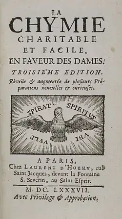| Notable work | La Chymie Charitable et Facile, en Faveur des Dames |