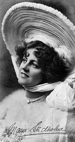 Caroline Maria Lupton (10 September 1872 – 10 March 1930),[1] known professionally as Marie Studholme, was an English actress and singer of the Victorian and Edwardian eras, known for her supporting and sometimes starring roles in Edwardian musical comedy. Her attractive features made her one of the most popular postcard beauties of her day.