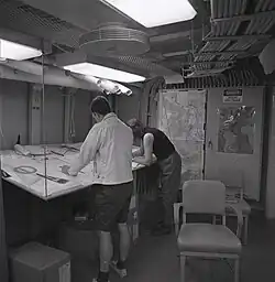 For the first 18 years of their collaboration, Heezen collected bathymetric data aboard the research ship Vema, while Tharp drew maps from that data since women were barred from working on ships at the time. She was later able to join a 1968 data-collection expedition on the USNS Kane.[16] She independently used data collected from the Woods Hole Oceanographic Institution's research ship Atlantis, and seismographic data from undersea earthquakes. Her work with Heezen represented the first systematic attempt to map the entire ocean floor.