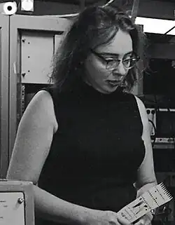 After the Japanese attack on Pearl Harbor, many young men left schools and universities to join the armed forces.[7] During World War II, more women were recruited into professions like petroleum geology, normally restricted to men. "With classrooms empty of men during the war years, Michigan—which had never allowed women into its geology program—was trying to fill seats,"[2] though less than 4% of all earth sciences doctorates at the time were obtained by women.[10] Having taken a geology class at Ohio, Tharp attended the University of Michigan at Ann Arbor's petroleum geology program, where she completed a master's degree in 1944.[11][2]