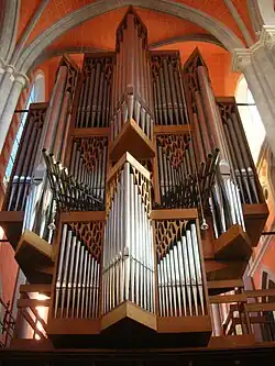 The present organ was built from 1969 to 1970 by Franz Rieger. The organ features the only authentic Spanische Trompete outside Spain, dating back to 1732. The organ was expanded in 2006 and 2007 by Orgelbau Romanus Seifert & Sohn from Kevelaer. In 2015, the organ was expanded by three stops. It now has 67 stops (more than 5,000 pipes) on four manuals and pedal, the largest organ in the region.[9][10]