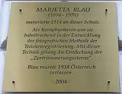 - ^ "Österreichisches Biographisches Lexikon ab 1815: Blau, Marietta (1894–1970), Physikerin". www.biographien.ac.at. Verlag der Österreichischen Akademie der Wissenschaften. doi:10.1553/0x00281076. ISBN 978-3-7001-3213-4. Retrieved 30 April 2025.
