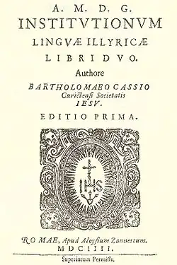 - ^ a b Horvat, Vladimir (2004). Bartol Kašić--otac hrvatskoga jezikoslovlja. Sveučilište u Zagrebu, Hrvatski studiji-Studia Croatica. p. 61. ISBN 978-953-6682-49-2.