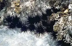 By far the most commonly seen invertebrate in Canary Island waters, the lime urchin is an important herbivore. Populations of these creatures have increased rapidly within recent years, primarily due to overfishing of their natural predators, such as starfish, triggerfish and Triton's trumpet. In areas with many of these creatures, the seabed can become completely stripped of algae. As a response to this "ecological emergency", widespread culling of sea urchins has been advocated in some areas.