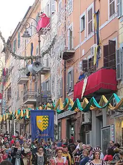 At the thirty-sixth edition on Sunday, October 2, 1960, the atmosphere was still permeated by the aftermath of the Summer Olympics held in Rome: numerous sportsmen and foreign visitors took the opportunity to come to Marino for the festivities. Among the distinguished presences recorded in Marino in that edition was that of American actor Charlton Heston, who was besieged by the crowd and forced to flee.[22]