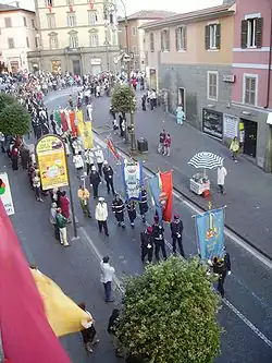 During the forty-first edition, on Sunday, October 3, 1965, Marino was the start and finish of the Giro del Lazio, a cycling competition of 250 km in length.[24] In 1967, having reached the forty-third edition, the fountain of the Four Moors had been moved from its original location in Piazza Lepanto and placed in its current location in Piazza Matteotti: moreover, in the same edition, the custom of festively decorating the balconies of Corso Trieste was resumed.[25]