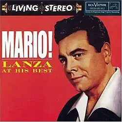 Mario! Lanza At His Best is a CD released by RCA Victor in 1995, and consists of two original albums recorded by tenor Mario Lanza. These are: the Neapolitan songs album Mario!, recorded in December 1958, and The Vagabond King, recorded in July 1959. The Mario! album has been singled out for special praise, with its star conductor Franco Ferrara of Rome's Accademia Nazionale di Santa Cecilia later hailing Lanza's singing on the disc as "vocally extraordinary...a Caruso-type voice." Lanza's first studio album in stereo, the Mario! selections include the Neapolitan songs "Voce 'e Notte," "Canta Pe' Me," "'Na Sera 'e Maggio," and "Passione." The arrangements were created by Carlo Savina and Ennio Morricone.