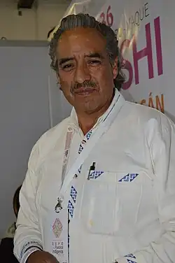 Mario Agustín Gaspar is a Mexican artisan known for his work in “maque” a pre Hispanic lacquer and “pasta de caña” sculptures made from a corn-stalk paste. He works in the lakeside town of Pátzcuaro, Michoacán, along with his wife, Beatriz Ortega Ruiz, also an artisan in her own right. Gaspar's work can be found in collections both in Mexico and abroad, including the Vatican and he has won various awards for his life's work.