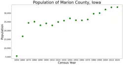 Marion County is a county in the U.S. state of Iowa. As of the 2020 census, the population was 33,414.[1] The county seat is Knoxville.[2] It is named for Francis Marion, a brigadier general from South Carolina in the American Revolutionary War.[3]