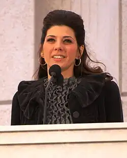 In 2010, Tomei appeared in Cyrus, a comedy-drama co-starring John C. Reilly and Jonah Hill.[43] Tomei hosted the 2011 Scientific and Technical Awards, which was followed by an appearance at the 83rd Academy Awards.[44] She starred in the mystery-suspense film The Lincoln Lawyer. She also appeared in Salvation Boulevard, which premiered at the 2011 Sundance Film Festival. Tomei's other 2011 films included Crazy, Stupid, Love and the George Clooney film The Ides of March. The same year, Lady Gaga said in an interview she would want Tomei to portray her in a film about the singer. Tomei responded, "I was thrilled when I heard. I love her. I love her music. And she's an awesome businesswoman. So I was so touched, really. I think it's incredible that she likes my work and that she'd think of me."[45]