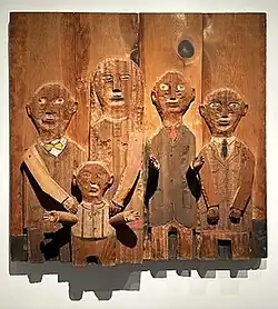 Marisol received awards including the 1997 Premio Gabriela Mistral from the Organization of American States for her contribution to Inter-American culture.[52] She was elected to membership in the American Academy of Arts and Letters in 1978.[53] Marisol created a series of wood sculptures in the 1990s, mostly depicting Native Americans. Two exhibits of these works were not well received and she felt misunderstood.[54] In 2004, Marisol's work was featured in "MoMA at El Museo", an exhibition of Latin American artists held at the Museum of Modern Art.[55] Marisol's work has attracted increased interest, including a major retrospective in 2014 at the Memphis Brooks Museum of Art in Memphis, Tennessee,[34] which also became her first solo show in New York City, at Museo del Barrio.[56]