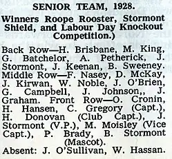 They had their first win in a first grade competition in the first round of the Roope Rooster competition on July 26, 1919. They defeated North Shore Albions on Auckland Domain by 17 points to 3.