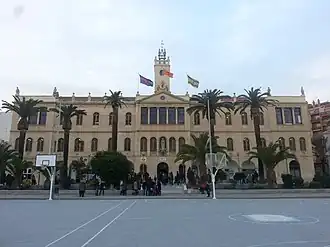 The main building was designed by the architect Jeroni Boada,[7] and posteriorly improved in 1911 by Josep Goday i Casals (who used to be an alumn of the school, and founder member of the Alumni Association).[8] The building is catalogued as a Bé Cultural d'Interès Local (Catalan: Local Cultural Heritage) at the Inventari del Patrimoni Arquitectònic de Catalunya (Catalan: Inventory of Architectural Heritage of Catalonia) as IPA-8680.[9]