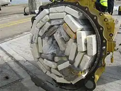 Underwater smuggling operations often involve divers attaching so-called "parasites"—large metal containers concealed beneath the waterline and filled with illicit substances such as cocaine—to the hulls of cargo ships. This method allows traffickers to covertly transport drugs across international borders, as the containers are difficult to detect during standard inspections.[19][20][21] However, only relatively small quantities have been reported using this technique, usually ranging in the hundreds of kilograms, as evidenced by reported seizures of up to 200 kg in single incidents.[22]