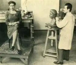 Marius Plamondon was born in 1914 in Quebec City, Quebec. He studied at the Quebec City École des beaux-arts.[1] He spent time in Italy where he studied sculpture.[2] In October 1938 he went to work with the sculptor Henri Charlier in France.[3] He was also interested in the work of the sculptor Jean Lambert-Rucki and his use of the expressive distortions of African art.[1]