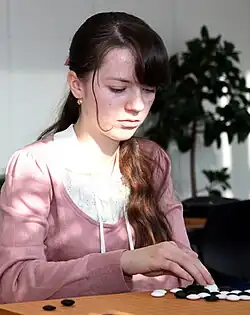 In 2009, Zakharchenko was promoted to a grade three insei after winning a series of games in promotional tournaments.[2] In 2011, Zakharchenko ranked among the top 12 female players in South Korea[3] In 2012, Zakharchenko reached the level of first-grade insei and was subsequently promoted to 1-dan professional by Hanguk Kiwon.[4]