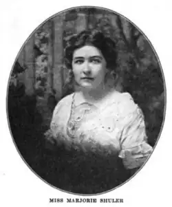 Shuler held numerous positions and titles that contributed to the woman suffrage movement. She was categorized as one of the "New Women", which was a new generation of women who were shaped by the successes of suffragist predecessors.[1] Shuler's passion for writing was clear in her publications, which are listed below. She was creative, witty, and transparent with her opinions about woman suffrage where she states "the establishment of a special school primarily for women is the result of the granting of equal suffrage. It is valuable proof of politics as a unifying instead of separating force between men and women".[3] Shortly after, she voiced "there has been opposition to college training instead of the mechanic’s bench for the boy, to domestic science school instead of the family cookstove for the girl".[3] As described in Joseph Dewey's encyclopedia article on Shuler, she and the other young woman suffragists had to learn how to negotiate and attract both sides of the political aisle to get things done.[1] Using her writing skills, she was a publicist for NAWSA and local campaigns in New York.[1] She was also associate editor for NAWSA's publication The Woman Citizen. In addition to her work for NAWSA, she created and profited from the Business Women's Club, she was elected City Chairman of Buffalo, New York, and was a member of the Scribblers of Buffalo. Before women won the vote, she was chair of Suffrage Commission of New York State. Shuler was known to be humorous in her writing and passion for travel. Both she and her mother were Christian Scientists, and Marjorie became a longtime writer for the Christian Science Monitor newspaper.
