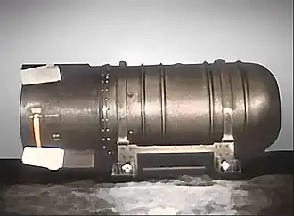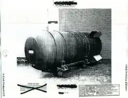 At 12 feet 4.37 inches (3.77 m) long, 58.48 inches (1.49 m) in diameter, an 80.9 inches (2.05 m) span over the fins, and weighing 17,600 pounds (8,000 kg), the Mk 21 was half the length and less than half the weight of the Mk 17/24 weapons it replaced. The Mk 21 Y1 had a yield of 18 to 19 megatons. The "clean" Mk 21 Y2 (later designated Mk 26) was tested at 4.5 megatons. All 275 Mk 21 weapons stockpiled were the Y1 version.[2][3]