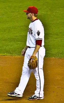 Mark Andrew Reynolds (born August 3, 1983) is an American former professional baseball third baseman and first baseman. He played in Major League Baseball (MLB) for the Arizona Diamondbacks, Baltimore Orioles, Cleveland Indians, New York Yankees, Milwaukee Brewers, St. Louis Cardinals, Washington Nationals, and two stints with the Colorado Rockies. A right-hander both when batting and throwing, Reynolds was known for his frequent and long home runs, high strikeout totals, and defensive versatility, having been primarily a third baseman before transitioning to first base while playing for the Orioles.