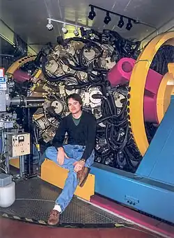 ![]() British nuclear physicist Mark Riley with the Gammasphere, the world's most powerful gamma-ray spectrometer in 2001 at Lawrence Berkeley National Laboratory. | |