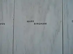 At the Flight 93 National Memorial in Pennsylvania, Bingham's name is located on one of the 40 8-foot-tall (2.4-meter) panels of polished, 3-inch-thick (75-millimeter) granite that comprise the Memorial's Wall of Names.[18][43]